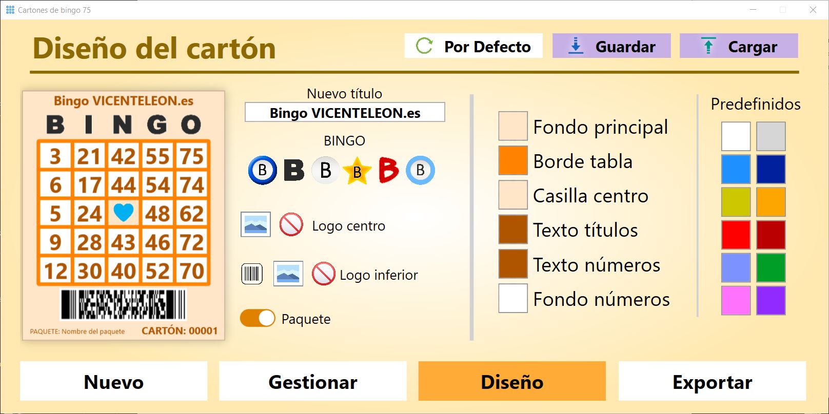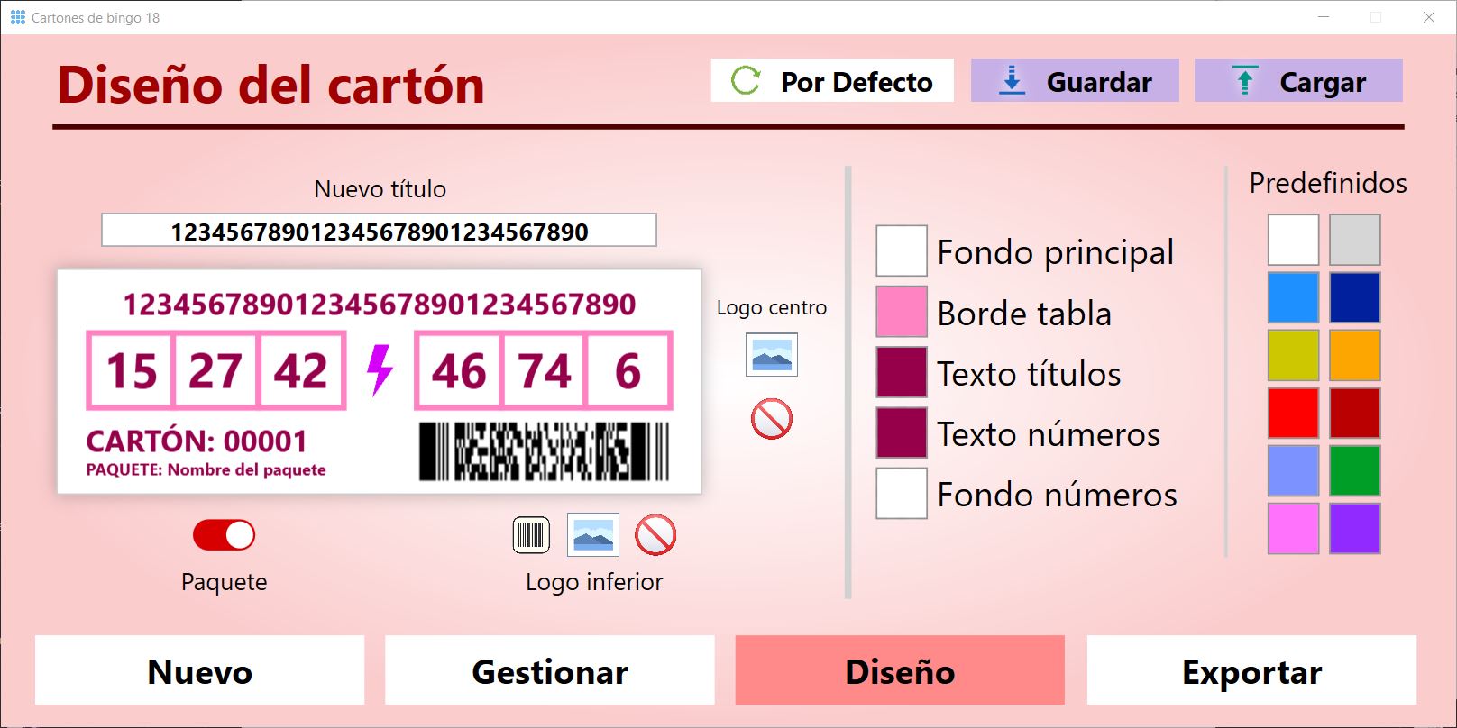Aquí realizamos el diseño que tendrán los cartones de bingo cuando los exportemos con la siguiente opción.