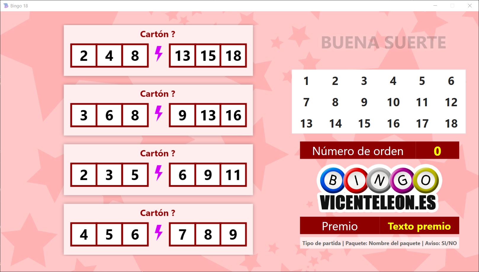 - En caso de usar cartones de bingo durante la partida, aquí elegimos el paquete que vamos a usar.