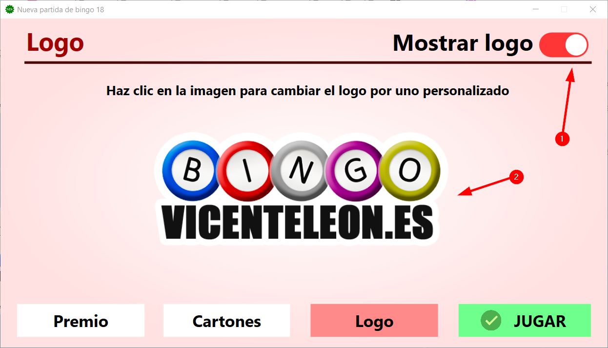 - Aquí estableceremos los cartones de bingo que se van a usar durante la partida.
